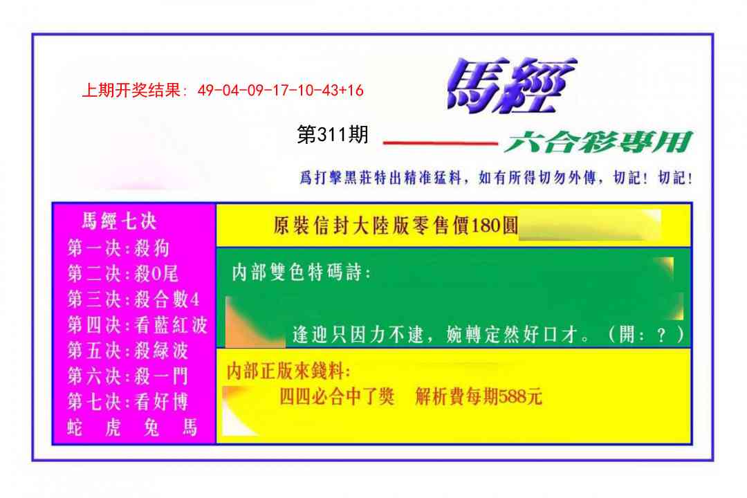 311期: 澳门六合彩 『赢钱秘诀图』已更新