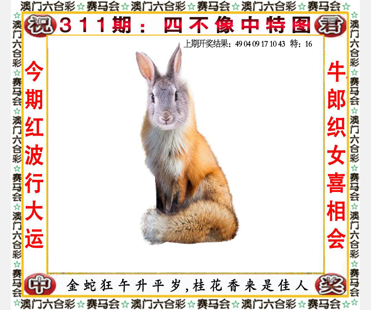 311期: 澳门六合彩 『两 肖 中 特』已更新